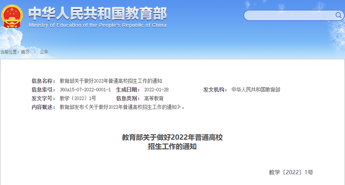 ★教育部关于做好2022年普通高校招生工作的通知(教育部原文)